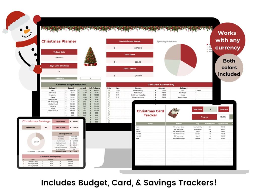 No need for over-complicated tools. Just a straightforward tracker that helps you manage your overall holiday budget, Christmas cards, and savings…without the stress.